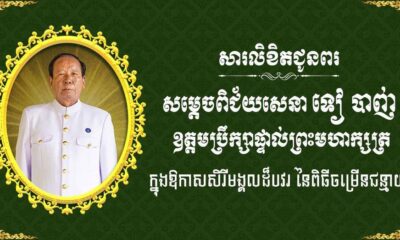 ឆ្លៀតក្នុងឱកាសដ៏មហានក្ខត្តឫក្សនេះ យើងខ្ញុំទាំងអស់គ្នា សូមបួងសួងដល់គុណបុណ្យព្រះរតនត្រ័យ កែវទាំងបី វត្ថុស័ក្តិសិទ្ធិទាំងឡាយក្នុងលោក ទេវតាថែរក្សាទឹកដីនៃព្រះរាជាណាចក្រកម្ពុជា សូមព្រះអង្គតាមជួយបីបាច់ថែរក្សា ប្រទានពរជ័យ សិរីសួស្តី ជ័យមង្គលគ្រប់ប្រការជូនដល់ សម្តេចពិជ័យសេនា ទៀ បាញ់ និងលោកជំទាវ ព្រមទាំងបុត្រា បុត្រី ចៅប្រុស ចៅស្រីទាំងអស់ សូមមានជន្មាយុយឺនយូរ សុខុមាលភាពល្អបរិបូរណ៍ កម្លាំងមាំមួន និងសូមបានសមប្រកប ដោយព្រះពុទ្ធពរដ៏ប្រសើរថ្លៃថ្លាបំផុតទាំងបួនប្រការគឺ អាយុ វណ្ណៈ សុខៈ ពលៈ ជានិច្ចនិរន្តរ៍កុំបីឃ្លៀងឃ្លាតឡើយ៕