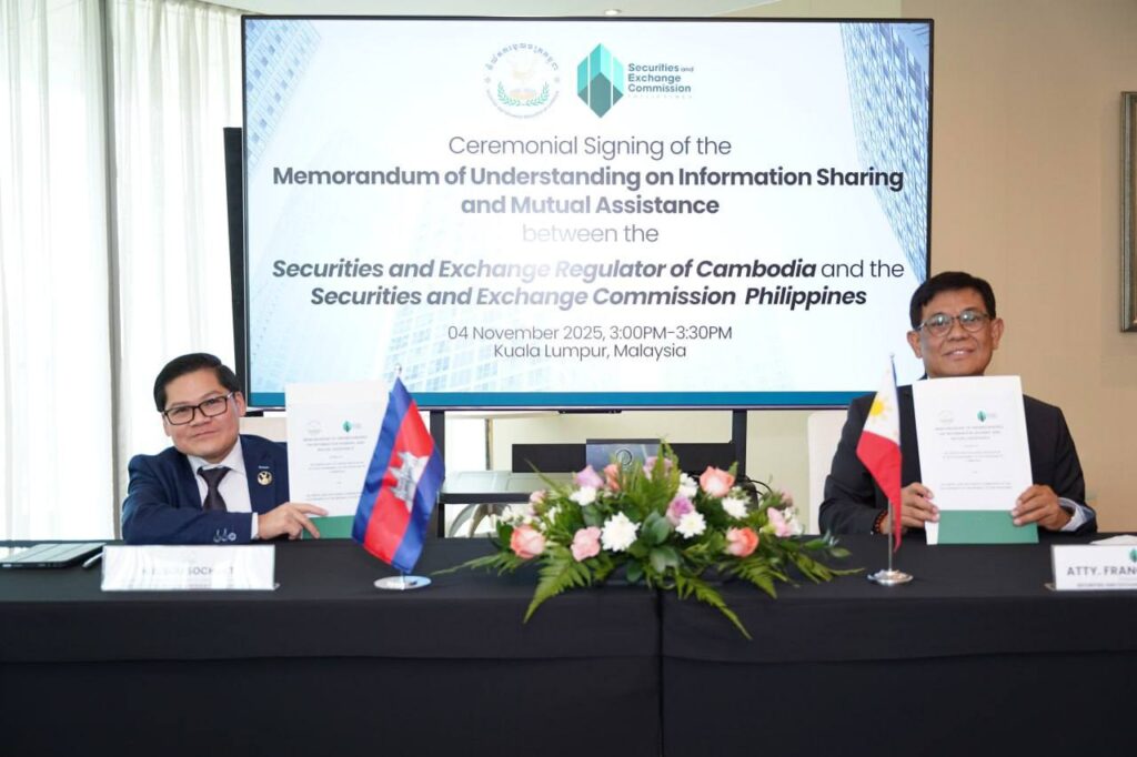 លោក ស៊ូ សុជាតិ ប្រតិភូរាជរដ្ឋាភិបាលទទួលបន្ទុកជាអគ្គនាយកនៃនិយ័តករមូលបត្រកម្ពុជា នៅថ្ងៃទី ០៤ ខែវិច្ឆិកា ឆ្នាំ ២០២៥ បានចុះអនុស្សរណៈនៃការយោគយល់គ្នា (MoU) ជាមួយគណៈកម្មការមូលបត្រហ្វីលីពីន (SEC) តំណាងដោយលោក Francis Ed. Lim ប្រធាននៃ SEC នៅទីក្រុងកូឡាឡាំពួរ ប្រទេសម៉ាឡេស៊ី ដោយមានការចូលរួមធ្វើជាសាក្សីដោយលោក Eugene Wong នាយកប្រតិបត្តិ នៃវិទ្យាស្ថានហិរញ្ញវត្ថុប្រកបដោយចីរភាព។