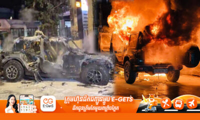 រថយន្តម៉ាក Jeep មួយគ្រឿងបានជ្រុលទៅបុករថយន្តព្រូស មួយគ្រឿង និងម៉ូតូមួយគ្រឿងទៀត បណ្តាលឱ្យរថយន្ត ...