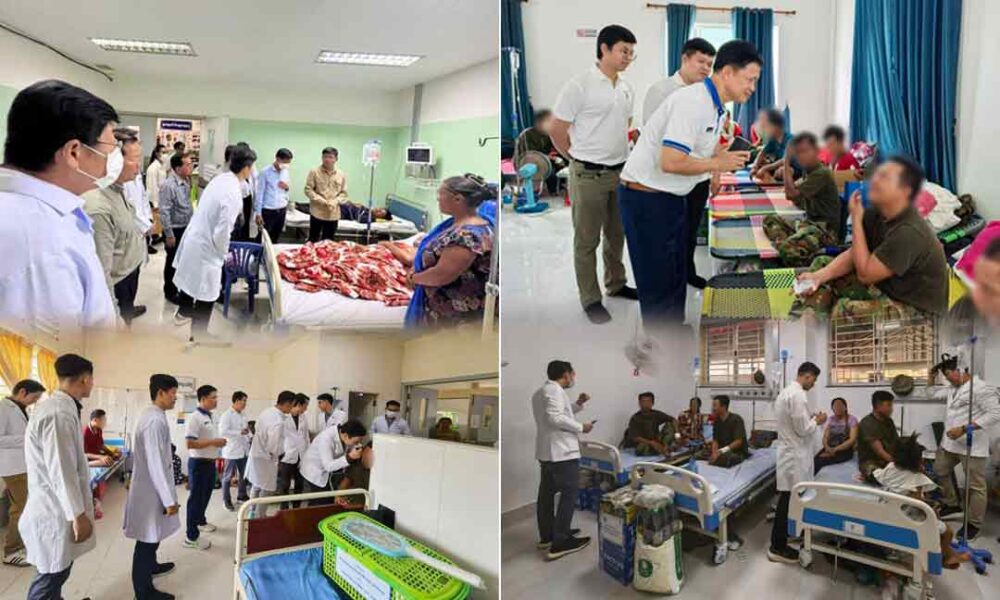 ក្រុមគ្រូពេទ្យ នៃមន្ទីរពេទ្យមិត្តភាពខ្មែរ-សូវៀត ដឹកនាំដោយ លោកសាស្ត្រាចារ្យ ងី ម៉េង និង មន្ទីរពេទ្យជាតិ តេជោសន្តិភាព ដឹកនាំដោយ លោក សួន សាមិត្ត និងថ្នាក់ដឹកនាំក្រសួងសុខាភិបាល លោក អ៊ូ វិភព រដ្ឋលេខាធិការ និង លោក ហេង សុទ្ធី អនុរដ្ឋលេខាធិការ បានចុះជួយពិនិត្យជំងឺបាក់បែកឆ្អឹង ជំងឺឆ្អឹង ជំងឺសួត ជំងឺភ្នែក ត្រចៀក ច្រមុះ បំពង់ក ជំងឺផ្លូវចិត្ត និងជំងឺទូទៅ ជូនដល់វីរកងទ័ព និងប្រជាពលរដ្ឋរងរបួសដោយសារជម្លោះព្រំដែនកម្ពុជា-ថៃ ដែលកំពុងព្យាបាល ដោយមានការយកចិត្តទុកដាក់បំផុតពីក្រុមគ្រូពេទ្យអ្នកជំនាញ នៃមន្ទីរពេទ្យជាតិនានា នៅរាជធានីភ្នំពេញ។