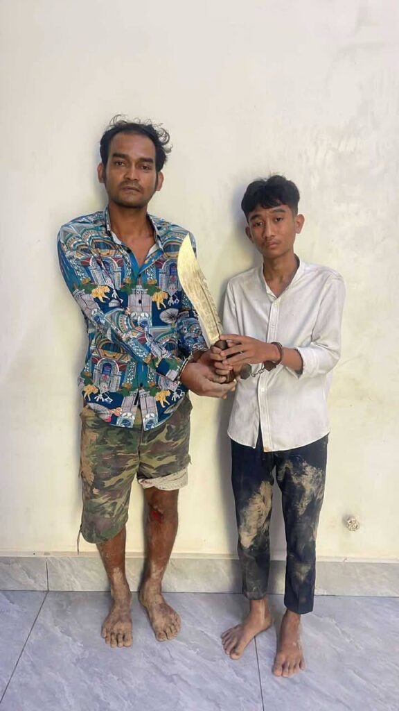 ឃាត់ខ្លួនជនសង្ស័យ ២ នាក់ រួមមាន ៖ ១-ឈ្មោះ គុយ សីហា ហៅ ដាំ ភេទប្រុស មុខរបរមិនពិតប្រាកដ និង ២-ឈ្មោះ ម៉ៅ ផានិត ហៅ ម៉ន ភេទប្រុស មុខរបរមិនពិតប្រាកដ។ ចំណែកវត្ថុតាងដកហូតបានដាវចំនួន ១ ដើម។
