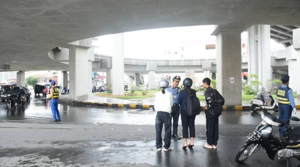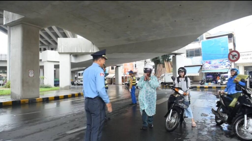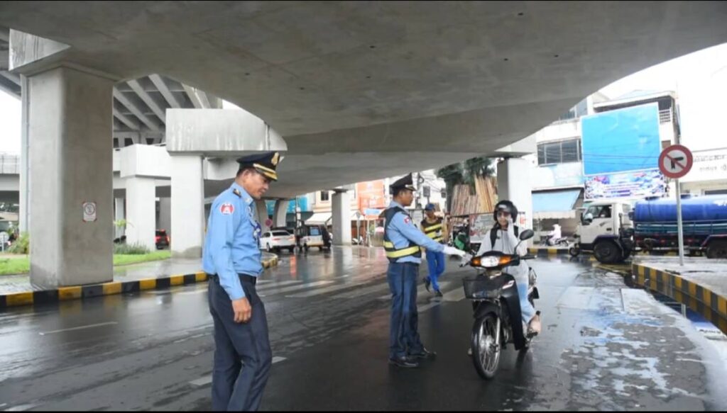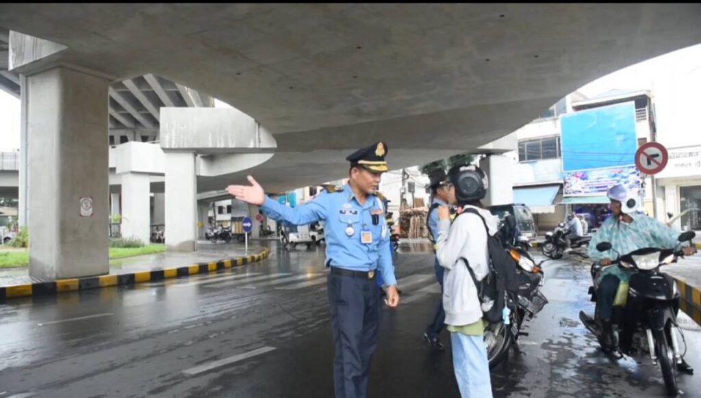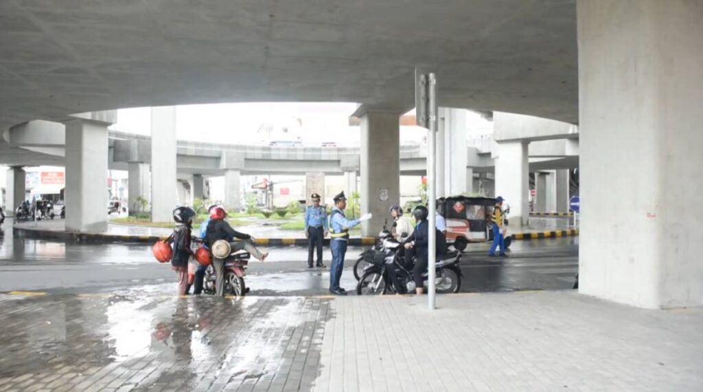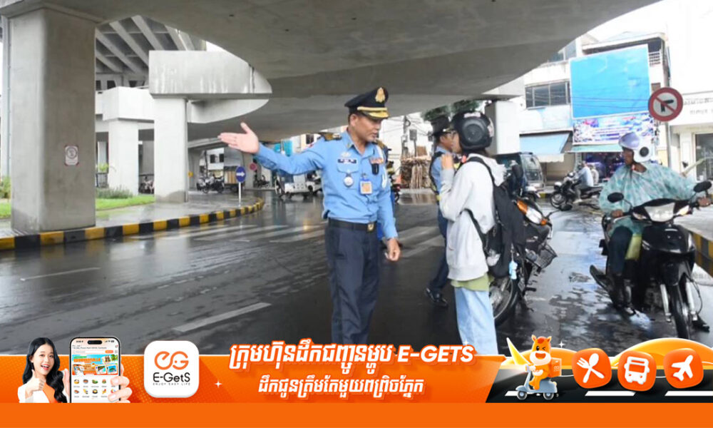 នគរបាលចរាចរណ៍រាជធានី ចុះអប់រំពលរដ្ឋអ្នកធ្វើដំណើរឆ្លងកាត់ក្រោមស្ពានអាកាសមរតកតេជោ ចៀសវាងជិះបញ្ច្រាសទិសដៅចរាចរណ៍